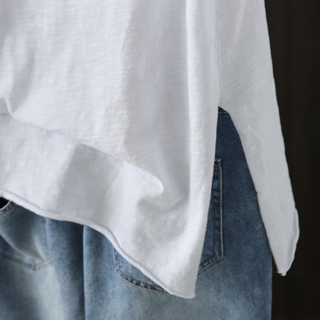 Cotton Hooded T-Shirt Women Summer New Loose Short-Sleeved Literary Hole Casual Top