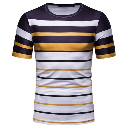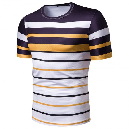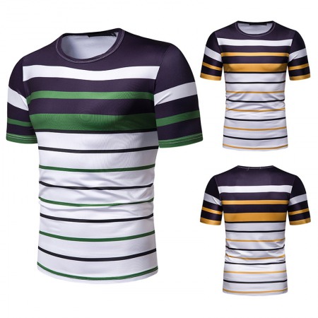 New Summer Men's Short-Sleeved T-Shirt Mens Contrast Striped Slim-Fit Casual T-Shirt