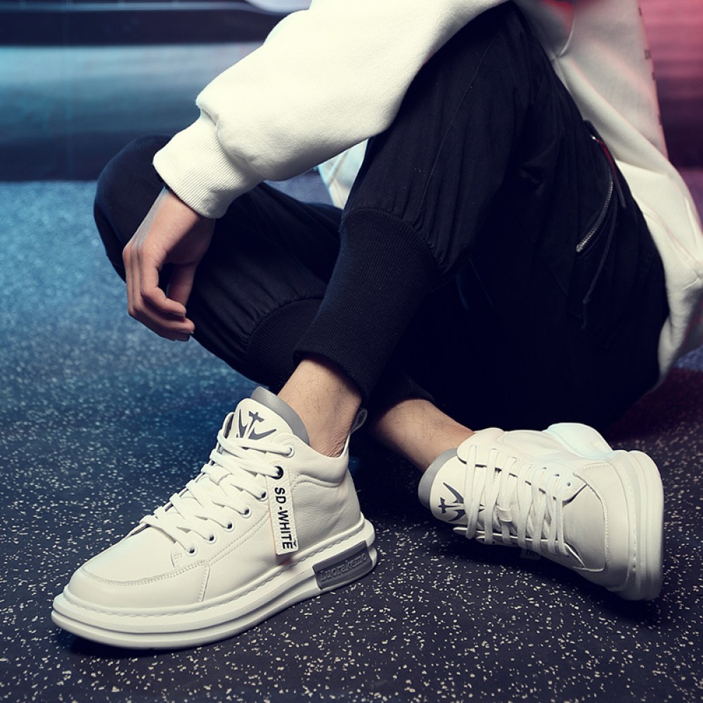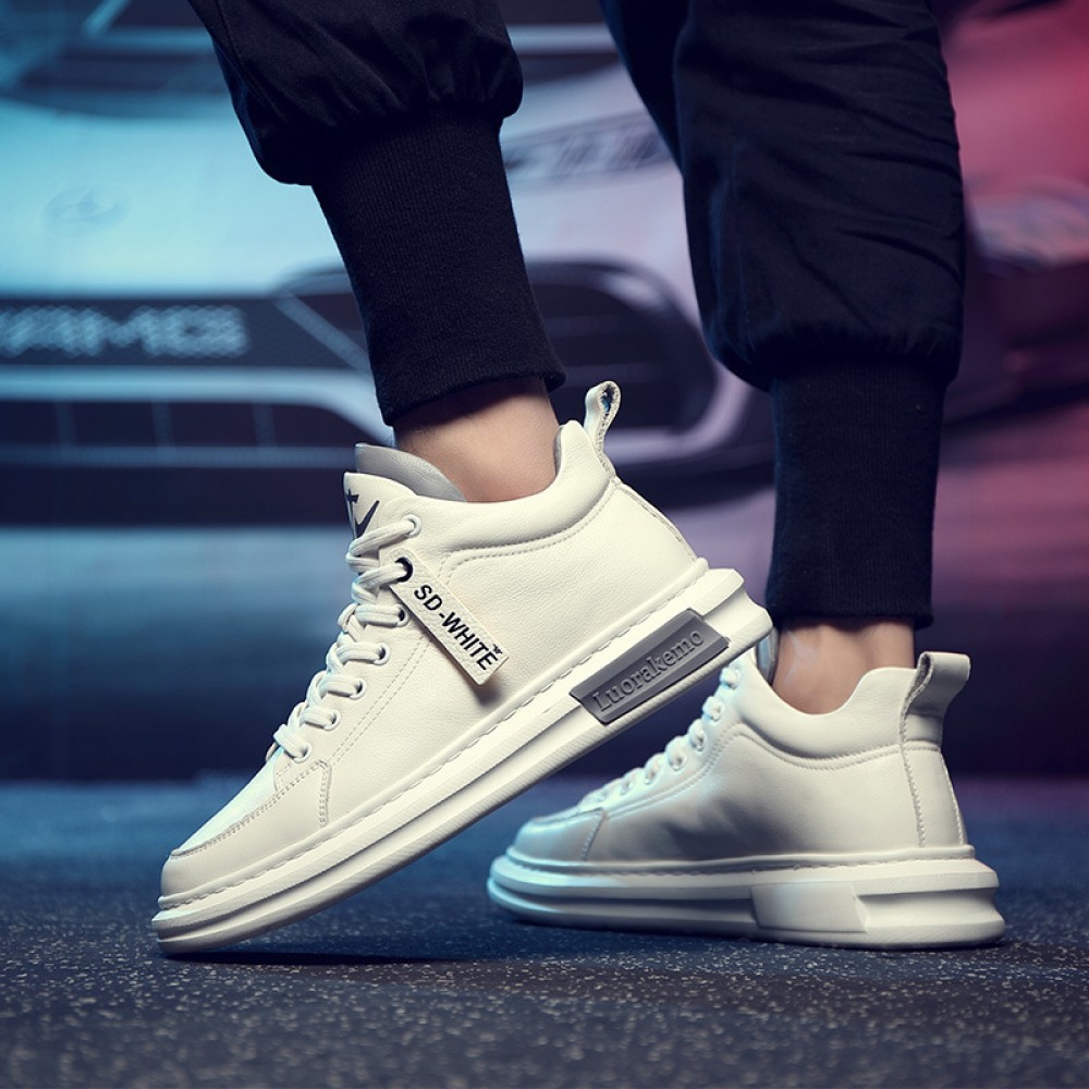 Sports Shoes Men's Spring New Trendy Shoes Leather Casual Style Men's Shoes White